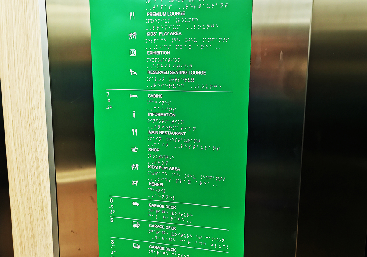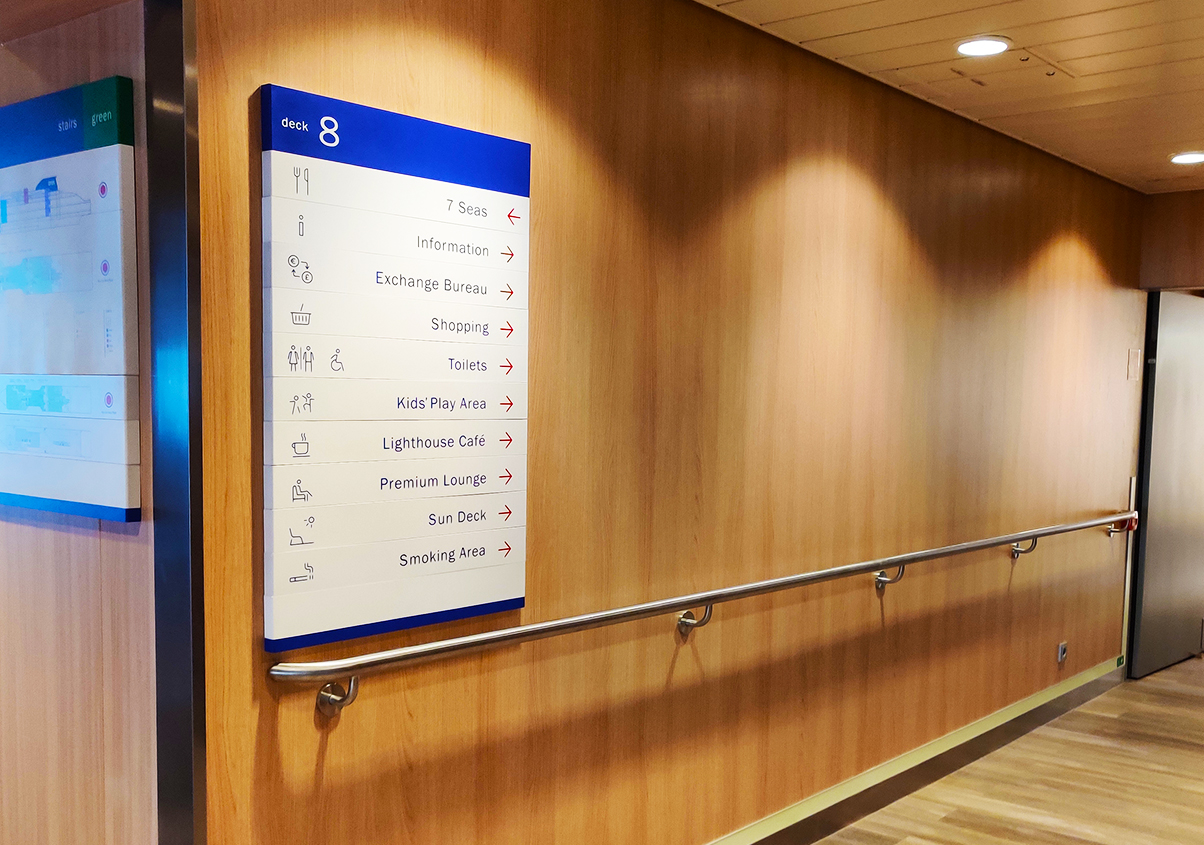 我司承接船上指示标识(包含吊式指示标识、舱室门牌、墙面指示标识、数字指示标识、梯道标识、Car Deck标识等)、商业标识(不锈钢字、3M玻璃膜、装饰画、不锈钢印刷)、盲文标识(盲文指示标识、安全标识等)的设计、制作与安装工作。