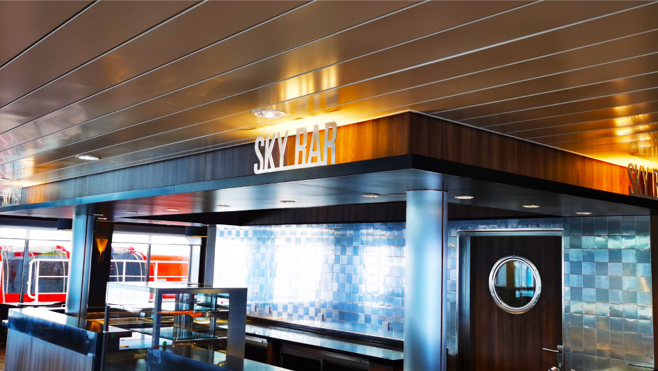 包括不锈钢标识,亚克力和镀锌钢板的使用、3M装饰玻璃的使用、厕所、酒吧、餐厅及CAR DECK指引。
