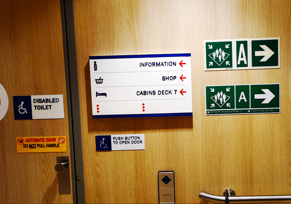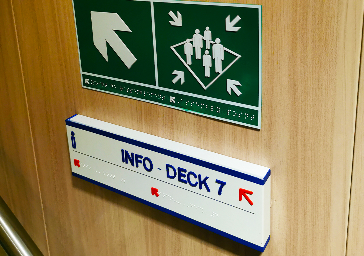 Our company has its own French braille engraving machine, which is specially used for the integrated embedded production of ABS and acrylic Braille. All blind beads are purchased from the United States. The ABS braille signs made by our company are mainly suitable for the safety signs of ships.
